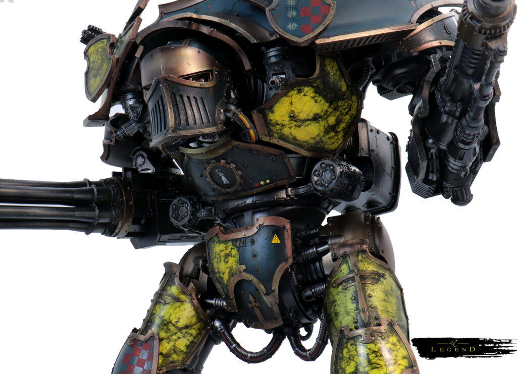 For this commission, I built a custom colour scheme based loosely on Legio Astorum. I wanted to keep that connection to the Warp Runners’ noble blues and golds, but push it toward something more personal — something that told a slightly different story. A Titan that might have stood beside Astorum in the Great Crusade, but diverged in the long wars that followed.
