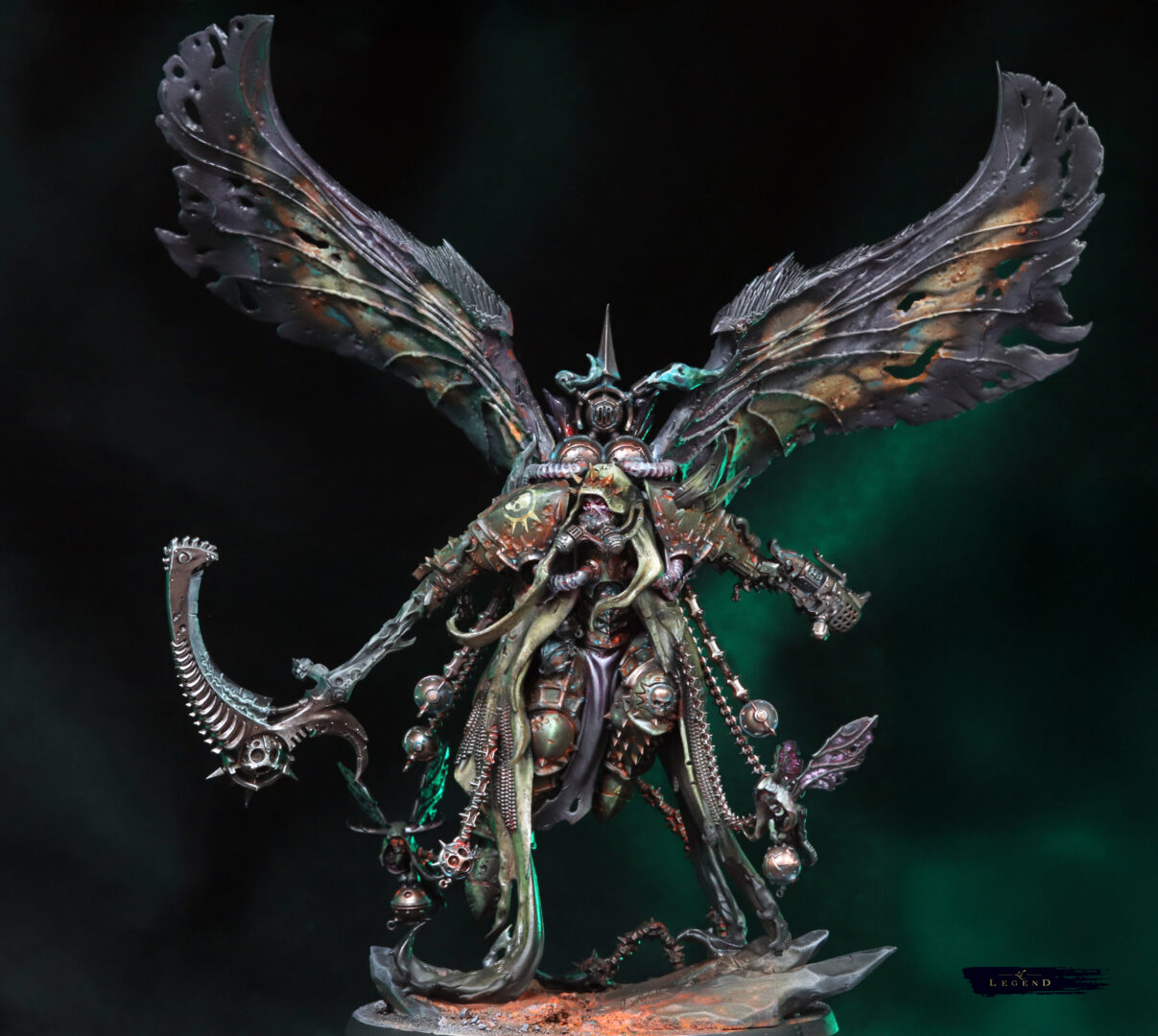 Daemon Mortarion is a lot. Not emotionally (okay, also emotionally), but physically. Wings, smoke, chains, Nurglings, tubes, bells, skulls — this model shows up with more parts than some entire armies. Painting it isn’t about skill so much as decision-making. If you don’t plan, the whole thing turns into green soup very quickly.