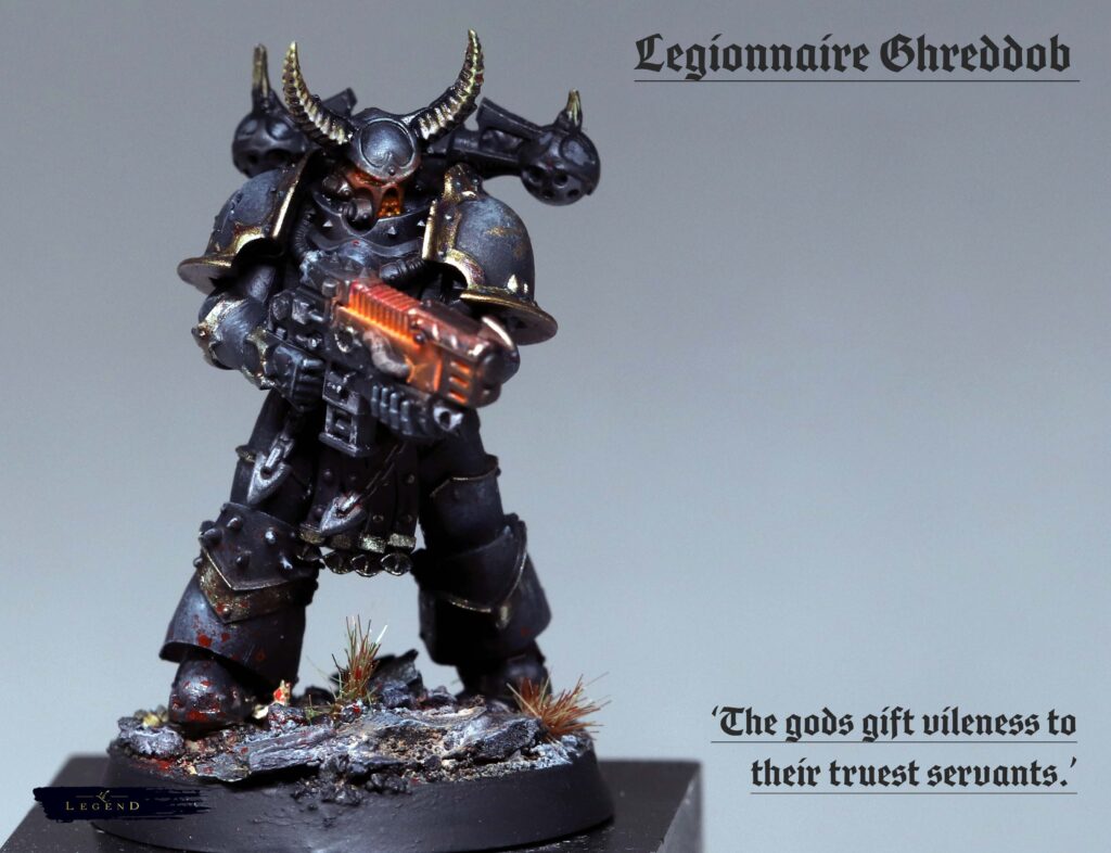 Legionnaire Maulthurien – Gore blessed Chainsword, Combi Bolter (melta).