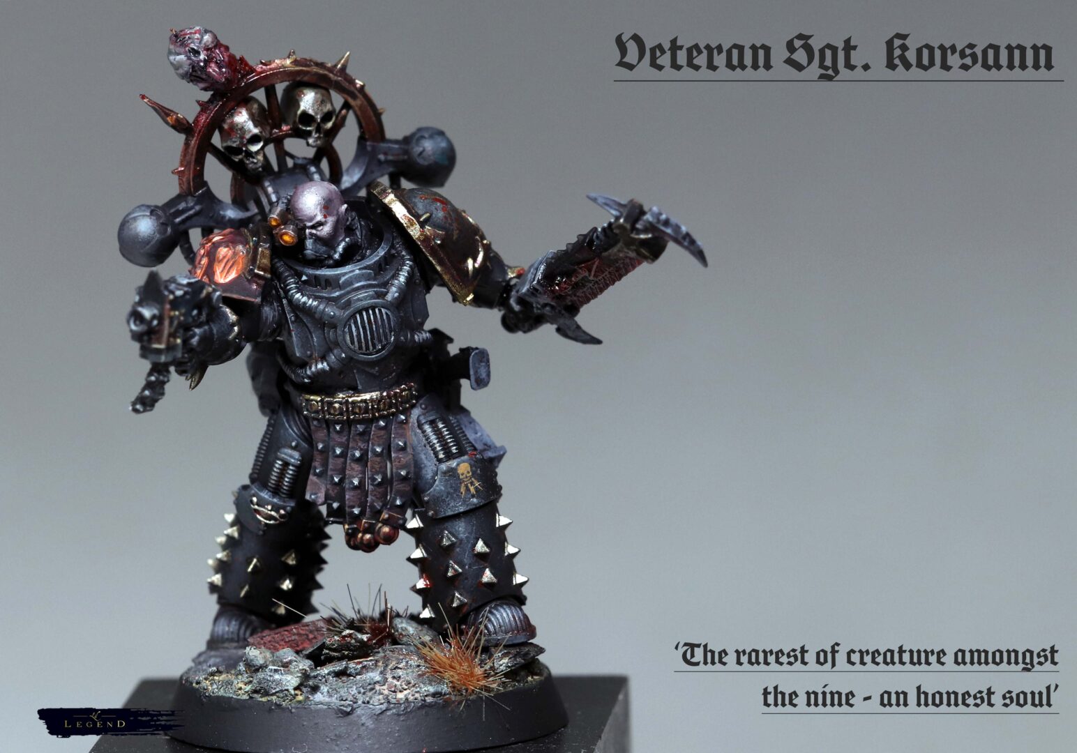 Veteran Sgt Korsann – Bolt Pistol, Chainsword, Daemon Haunted armour.