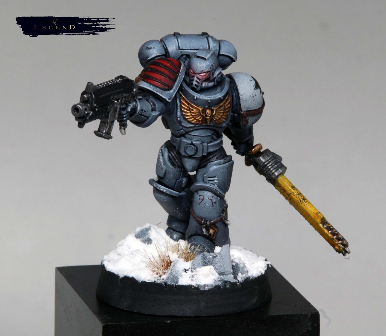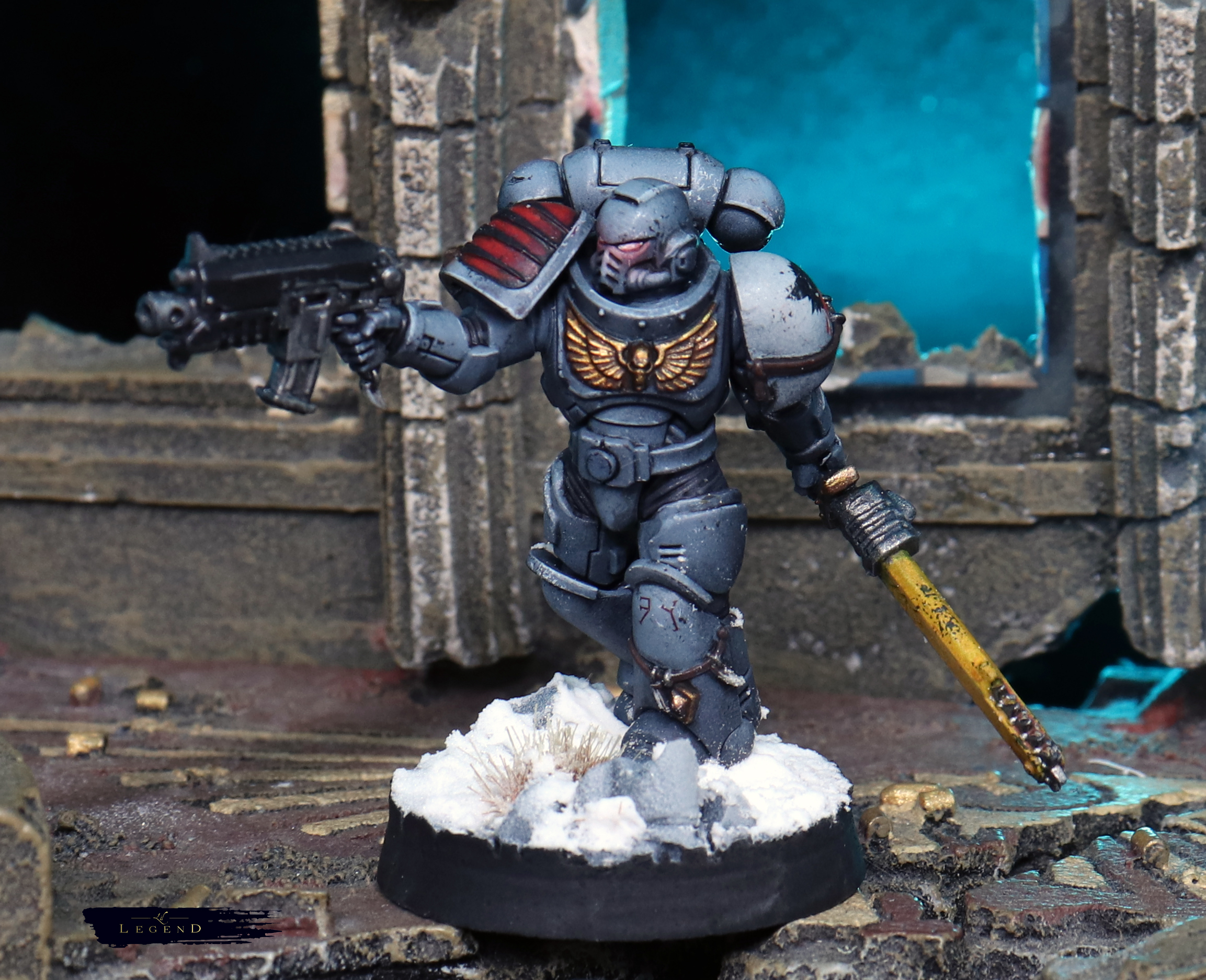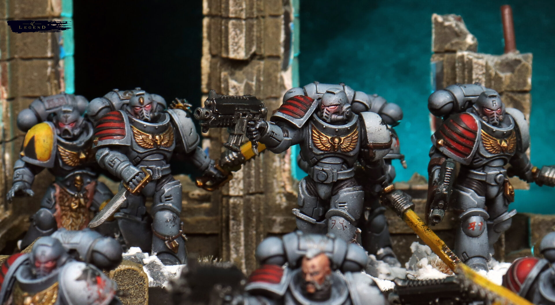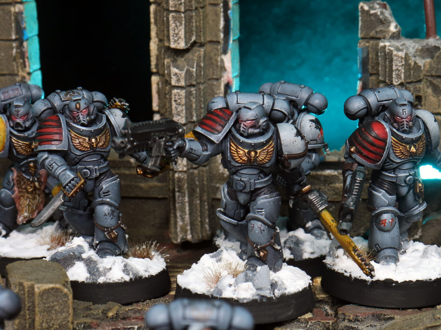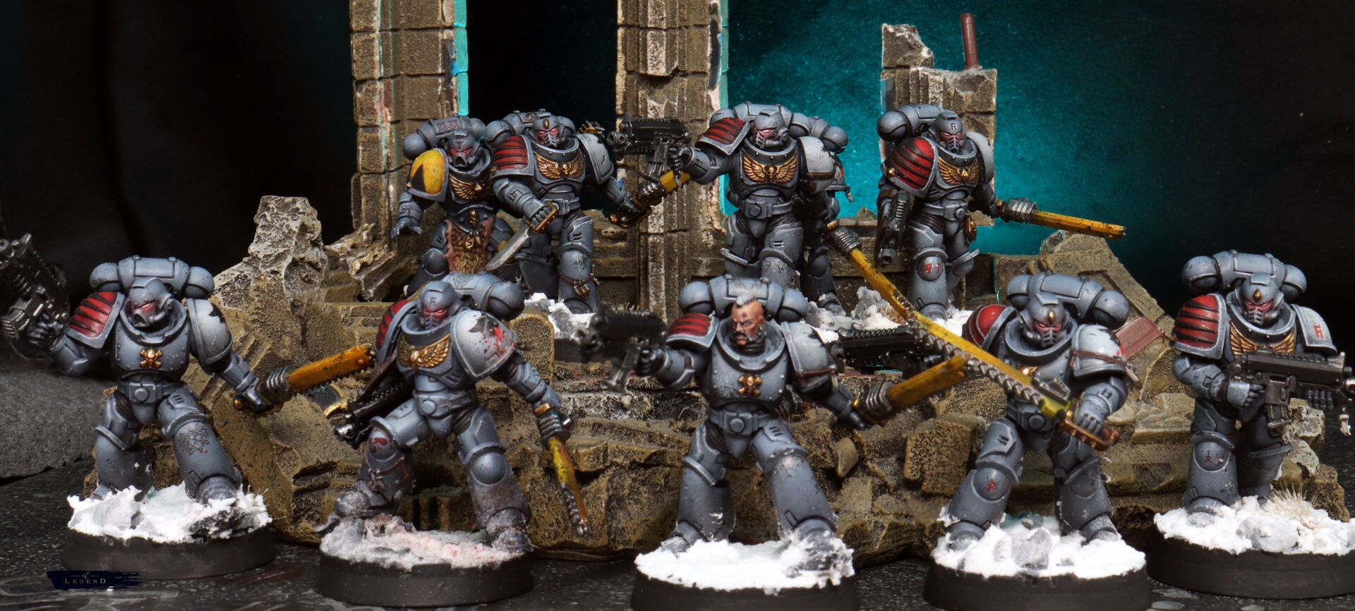 Weathering was kept restrained. A few chips on the edges, some dust on the lower legs — enough to suggest campaign wear without turning them into a different Legion entirely. Space Wolves benefit from clarity. Too much grime and they lose their identity.